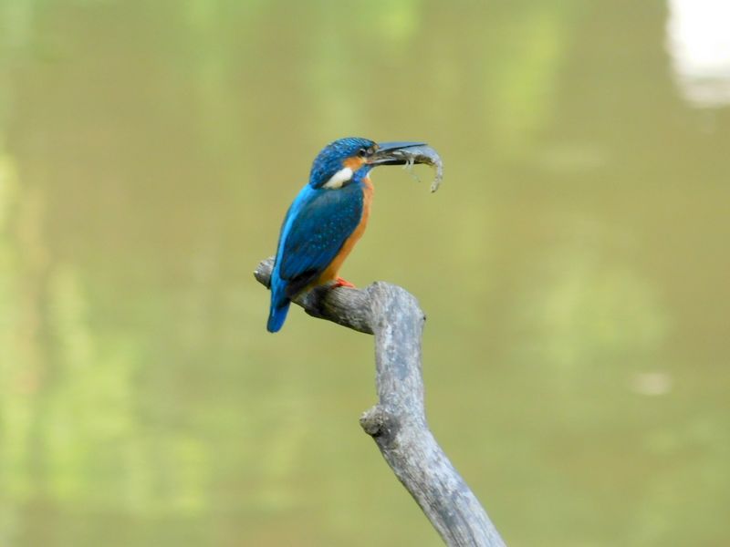 -- エビのようなものをくわえたカワセミ。