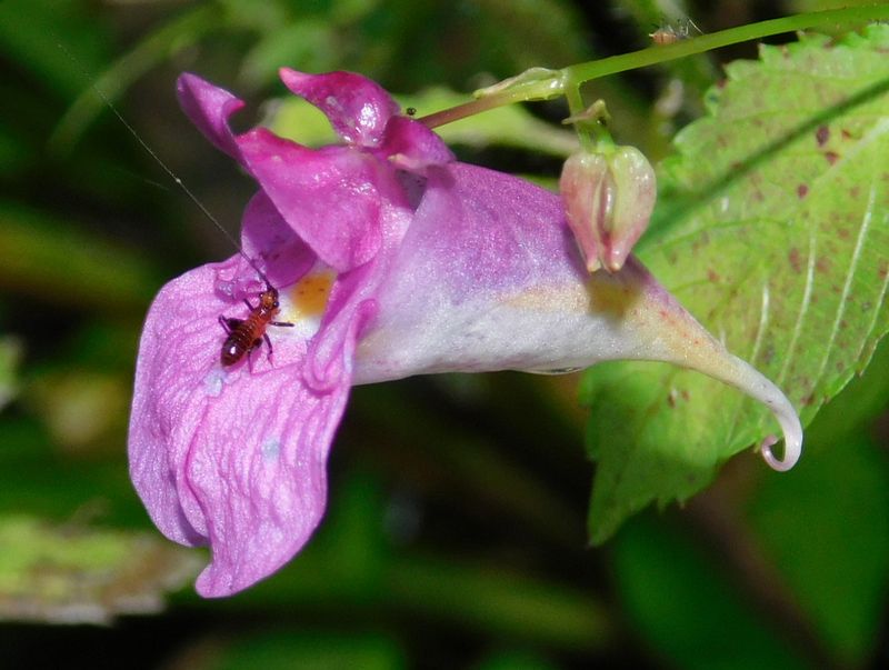 -- ササキリの幼虫 in ツリフネソウ。