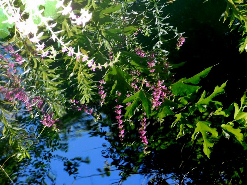 -- 池の水面に映ったミソハギ(赤紫)