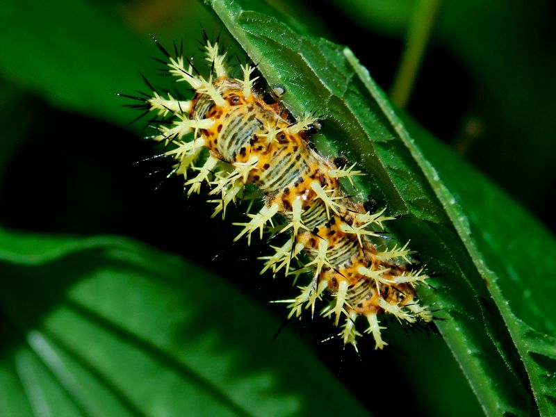 -- ルリタテハの幼虫@里山花壇