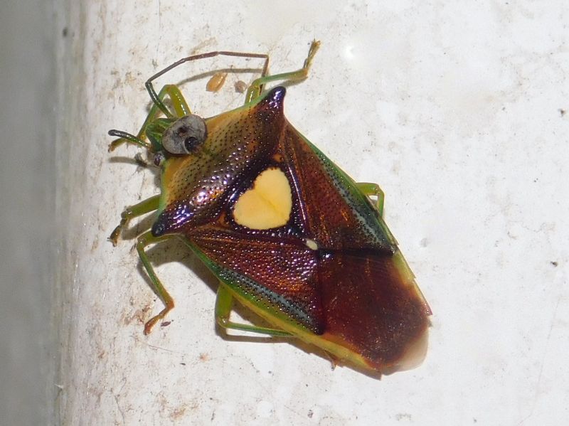 -- エサキモンキツノカメムシの頭に何かが。