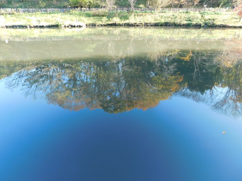 -- 里山花壇を映すはす池。