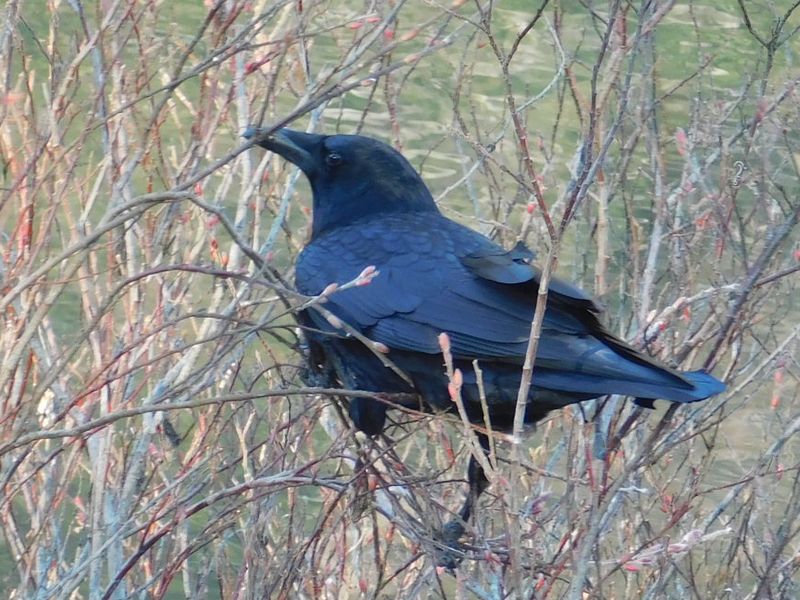 -- ハシボソガラス:花芽を食べに来たのか?