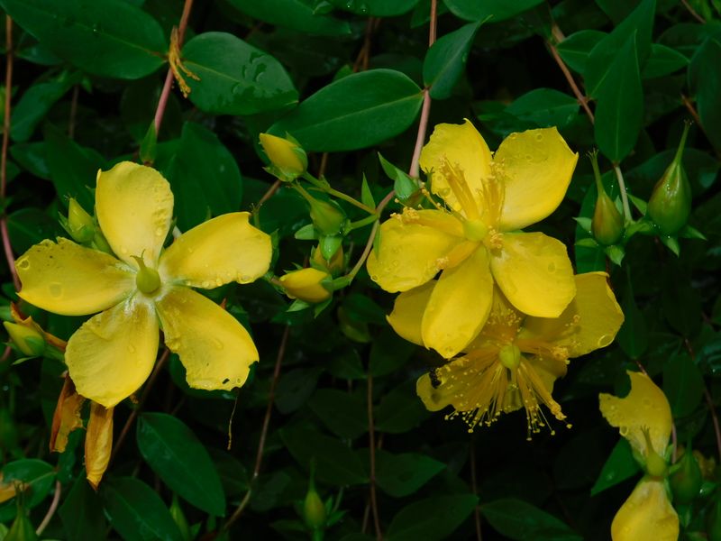 -- ビヨウヤナギの花の変化。