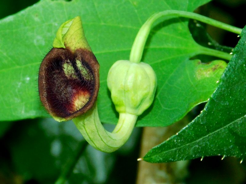 -- ウマノスズクサの花:微毛がある。