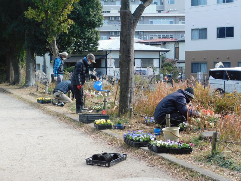 -- 花を植える人々。
