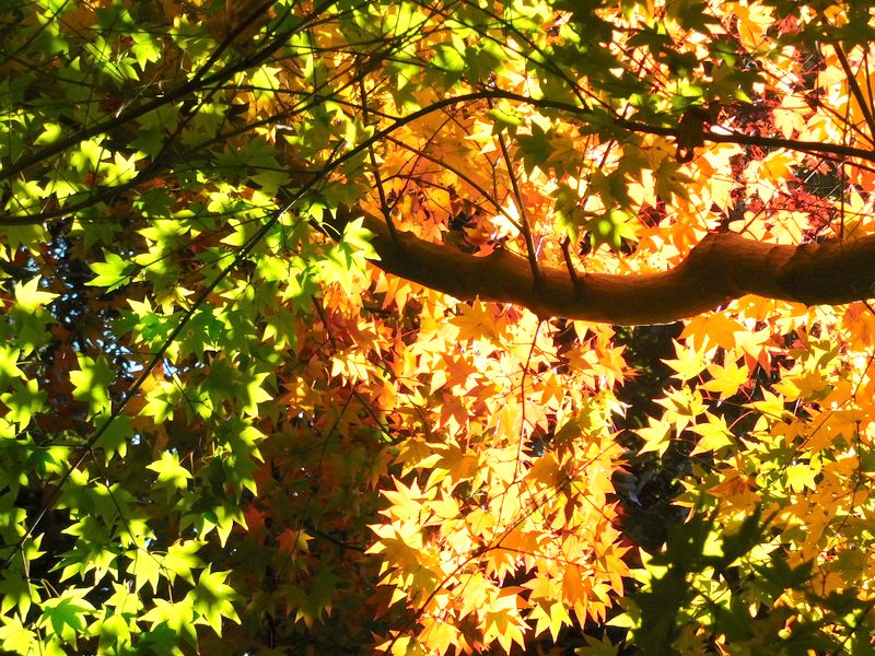 -- 神変堂付近の紅葉と緑葉。