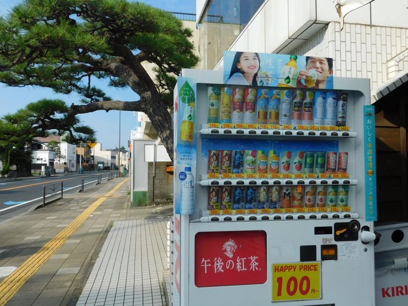 -- この自販機、憶えておこう。松の木が目印。