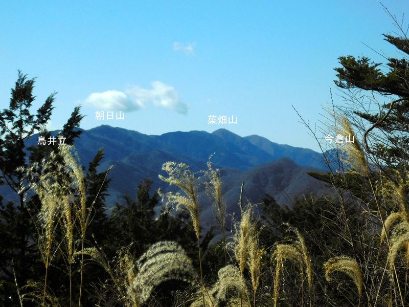 -- 山座名表示板による道志の峰々。