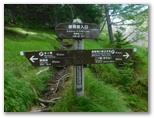 「一合五勺」と「二合」を通過し、「御殿庭下」(二合五勺)に到着。出発してから正味100分でした。この地点は帰りにも通ります。ここで小休止。日差しを受けるようになって、暑くなりました。携行飲料は、緑茶600ml、スポーツドリンク600ml、水道水300ml。いずれも冷凍してあり、解けた分を少しずつ飲んでいきます。この辺りから地表にはハナゴケ、樹上にはサルオガセが見られるようになりました。明るく開けた場所では、ヒョウモン類(蝶)も飛んでいました。