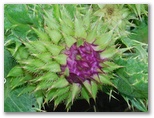 その後もあまりに風が強くて歩き難いので、右手、砂礫の谷道に降りてみると、受ける風が弱くなりました。強風時はお奨めです。幕岩からの道を右から合わせると、もうゴールは間近。16時50分、御殿場口新五合目の駐車場に到着しました。さっそくトイレに行きます。節水のために絞られてはいますが、ありがたくも水が出ました。手を洗うには十分です。外に出ると、紫色の大きな花、フジアザミが咲いていました。謙虚そうに大きな頭を下げる姿が、私は好きです。