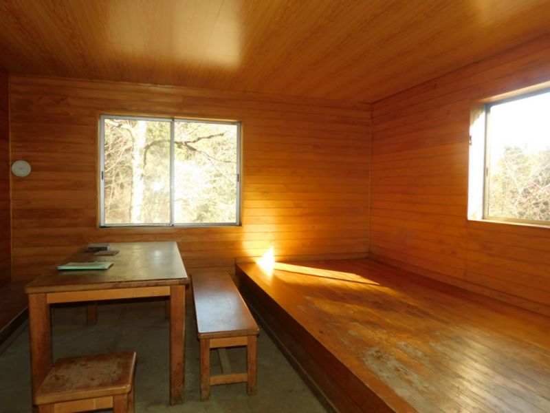 -- 避難小屋の中はとてもきれい。ここで昼食にする。11:06