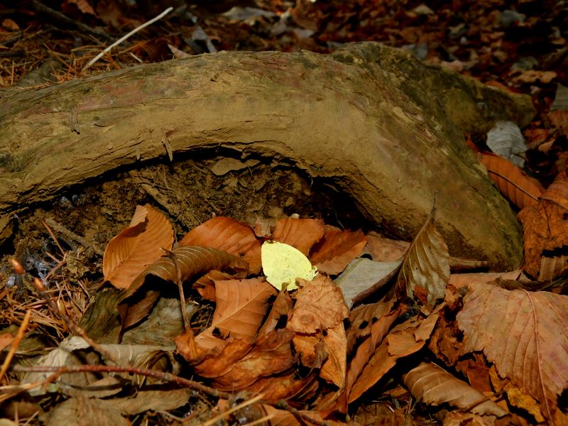-- 登山道のど真ん中に、越冬キタキチョウ。