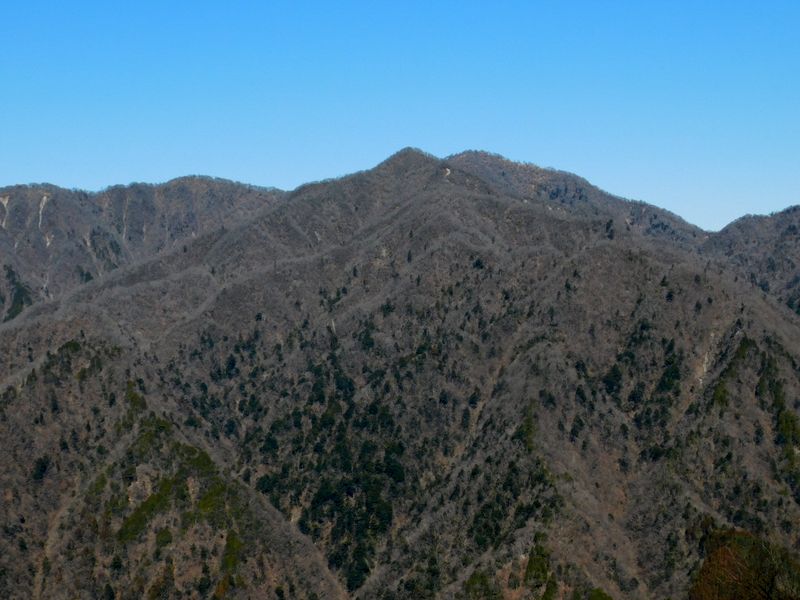 -- 檜岳より、同角ノ頭(鋭峰)と檜洞丸。