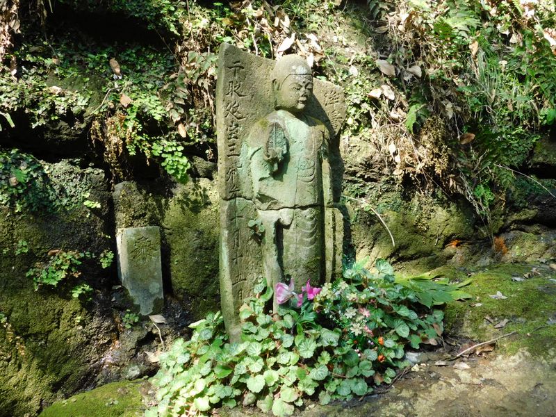 -- 切通しの通行人を見守る石仏。