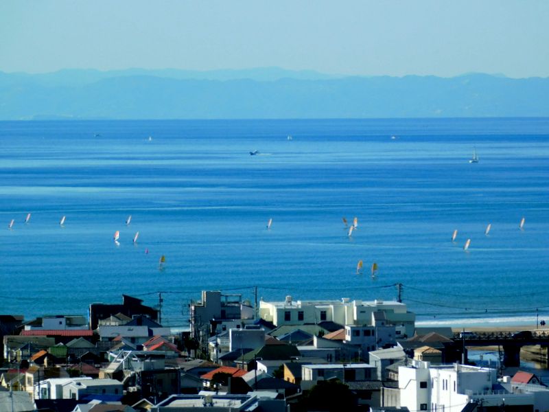 -- 祇園山見晴台より、由比ヶ浜に数々のヨット。