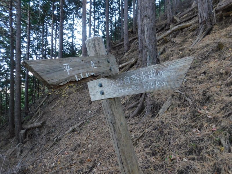 -- 傾いた道標に「横山沢の頭」の文字。9:34