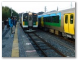 君津市 ◆JR久留里線の終点、上総亀山に行ってきた。来年4月1日に廃止される予定の、久留里~上総亀山間を今のうちに乗っておくため。もちろん、山歩きと観光ウォーキングも組み込む。 ◆運転本数の少ない時刻表を見ながら、速すぎず、遅すぎず歩く。船塚山~浅間山~壬申山の里山歩きは、特にゆったりプランとなる。ちなみに久留里線の走行速度は、運転席のメーターで最高40~50km/h。レールから山の上まで風が届けてくれた「カタンコトン、カタンコトン」には郷愁の響きがあった。 ◆亀山湖の「陽光桜」は青空と湖水とにマッチして、とてもきれいだった。秋の紅葉は、さらに素晴らしいと言うので、関係者の皆様、レンタサイクルをたくさん準備しておいてほしい。JR東日本は、来年から休日お出かけパスで鉄道代替バスにも乗れるよう、取り計らってくれると嬉しい。