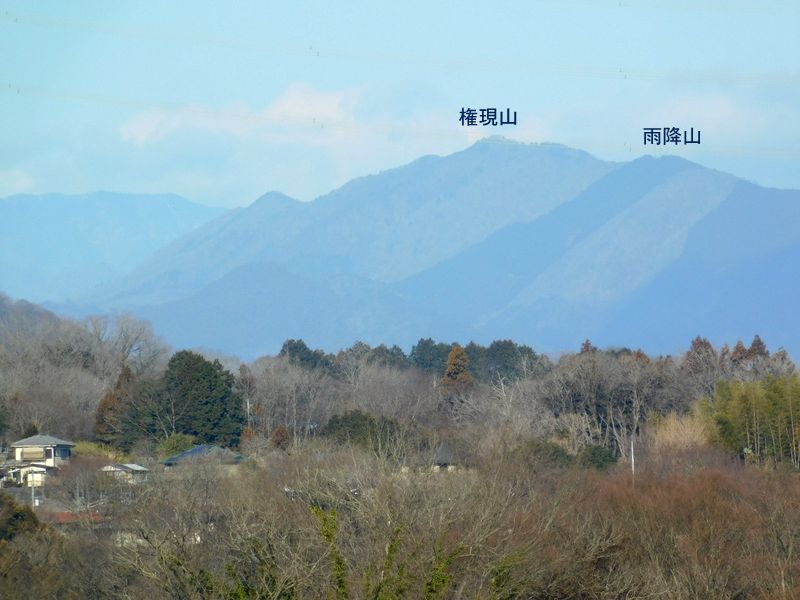-- 朝かすみの彼方に、権現山稜。