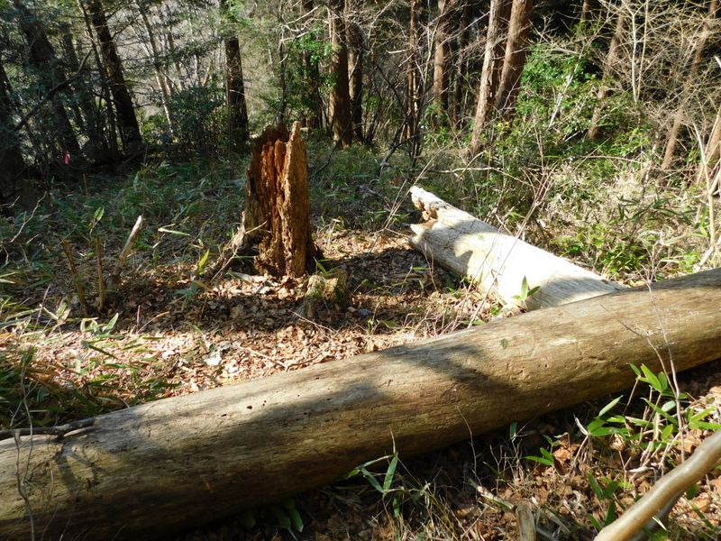 -- 倒木の多い南西尾根を下る。