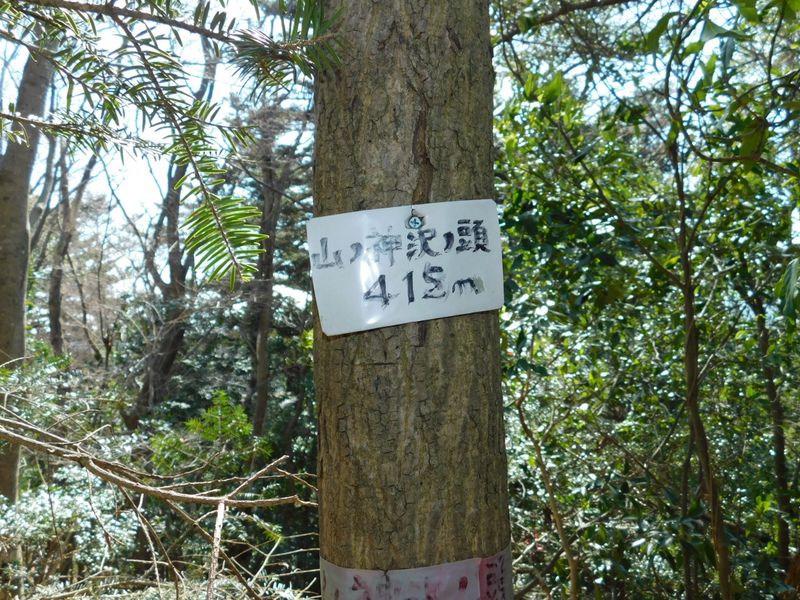 -- 山ノ神沢ノ頭 415m。生きた木に金属ネジが。