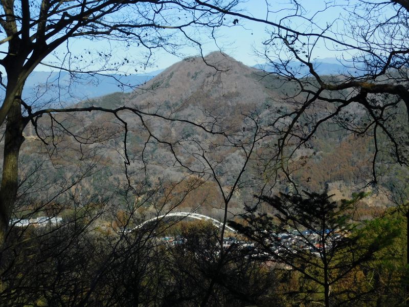 -- 右手の梢を透かして、石砂山と西沢大橋