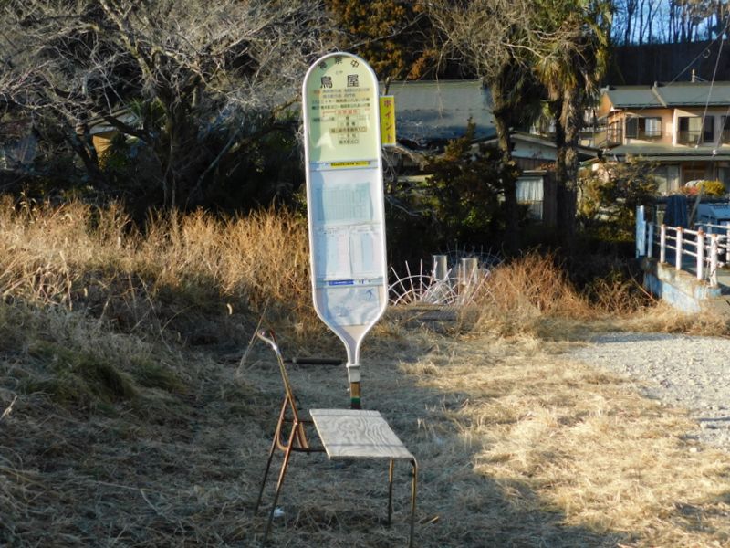 -- 鳥屋バス停:時間があるので、鳥居原まで歩く。