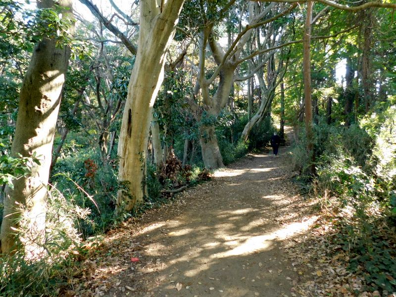 -- タブノキ並木が見えたら、天園はすぐそこだ。