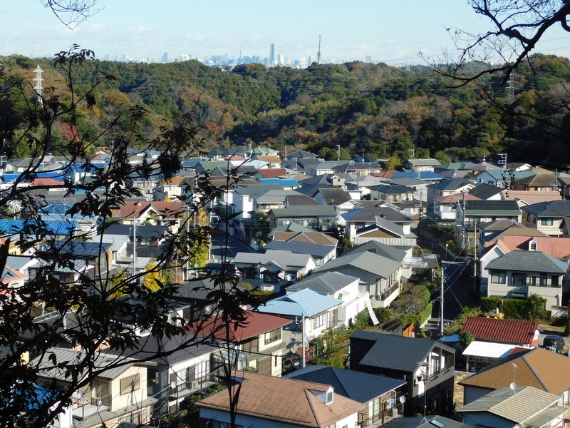 -- 「みなとみらい」遠望。手前は今泉台の家並み。