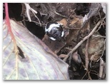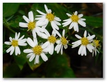 フジバラ平の先で道の斜度が増しました。初めて土止め階段が現れます。やがて道が遊園地「ぐりんぱ」に接近すると、その後の道すじが複雑になりました。ゴルフボールがたくさん落ちていますが、飛んできて頭に当たると、どうなるでしょうか? 観覧車のすぐ北、白菊の多い直線部を通過中に雨が降り始めました。空には黒雲、富士山にも黒雲、気が滅入ります。濡れると体力を奪われるので、雨合羽を着ました。道筋はますます複雑になり、ひたすらピンテが頼りです。