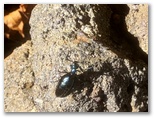 きょうの山行は須山浅間神社が起点です。鳥居の前でヤマレコアプリを起動し、「登山を開始」しました。これから裾野市の道標に従って、「富士山須山口登山歩道」を忠実に歩いていきます。快晴ですが、富士山の雲は大きくなっていました。一旦、国道469号を歩き、「渕」バス停を左に見たら、右折して農道に入ります。平坦な更地(?)のような緑地が何枚もありますが、何に使うのでしょうか? 日当たりは好く、うす紫の野菊にハラナガツチバチ。ひたすら長閑です。