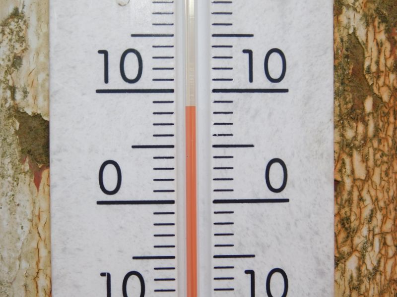-- 高尾山頂の温度計。9:19