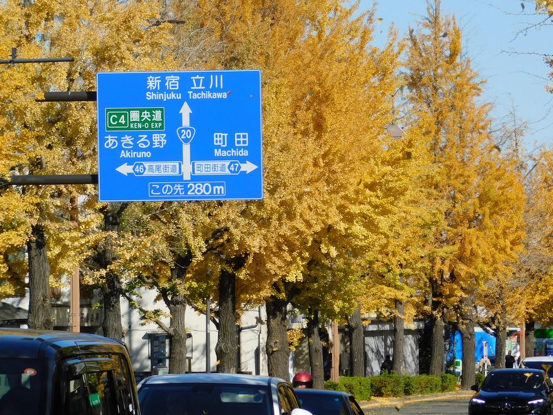 -- 国道20号のイチョウ並木。12:09