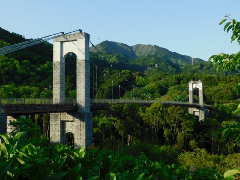 -- 風の吊り橋と三ノ塔・二ノ塔を振り返る。