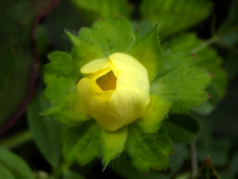 -- ヘビイチゴのつぼみ。