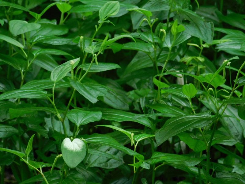 -- ハンゲショウは、葉の白化が始まったばかり。