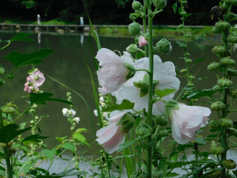 -- タチアオイの花盛り。その日限りに美しく咲く。
