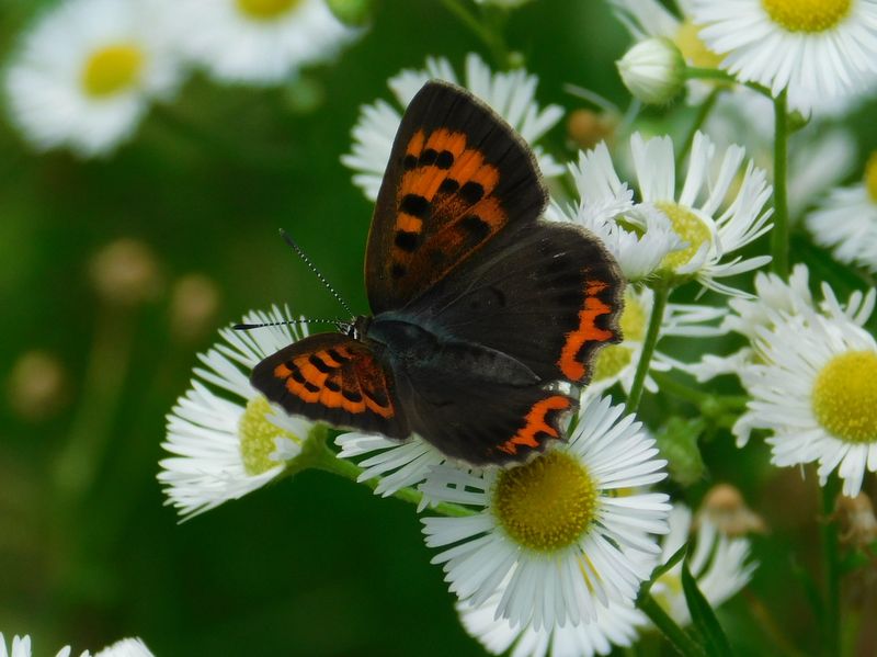 -- ベニシジミの夏姿。ヒメジョオンの花弁がきれい。