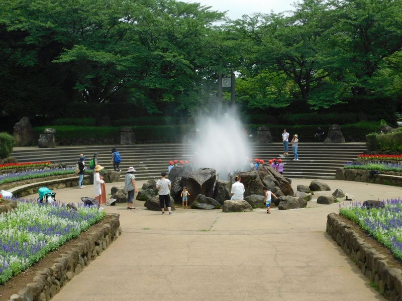 -- 幼児たちに大人気、南口の噴水花壇。