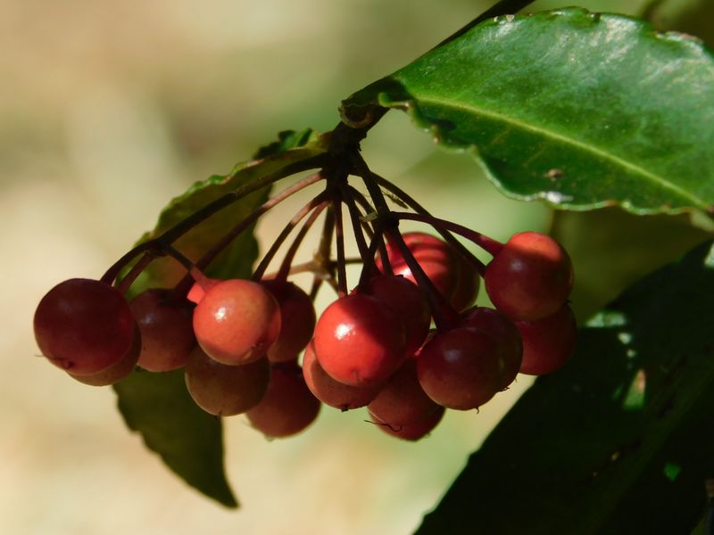 -- みずみずしい色をした、マンリョウの実。13:06