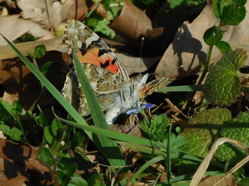2019.02.18 四季の森公園 (8) -- ヒメアカタテハとオオイヌノフグリ