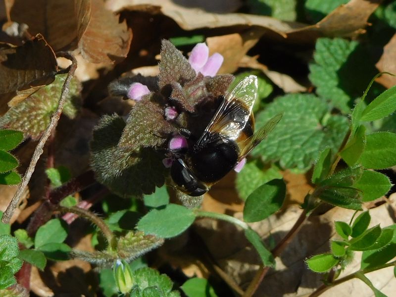-- オオハナアブとヒメオドリコソウ