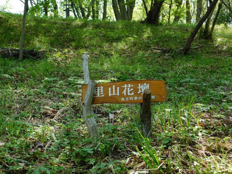 -- 新しい看板ができた「里山花壇」。11:07