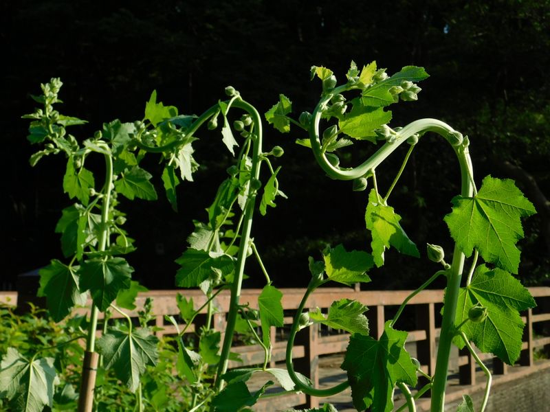 -- タチアオイが立とうとする。16:44