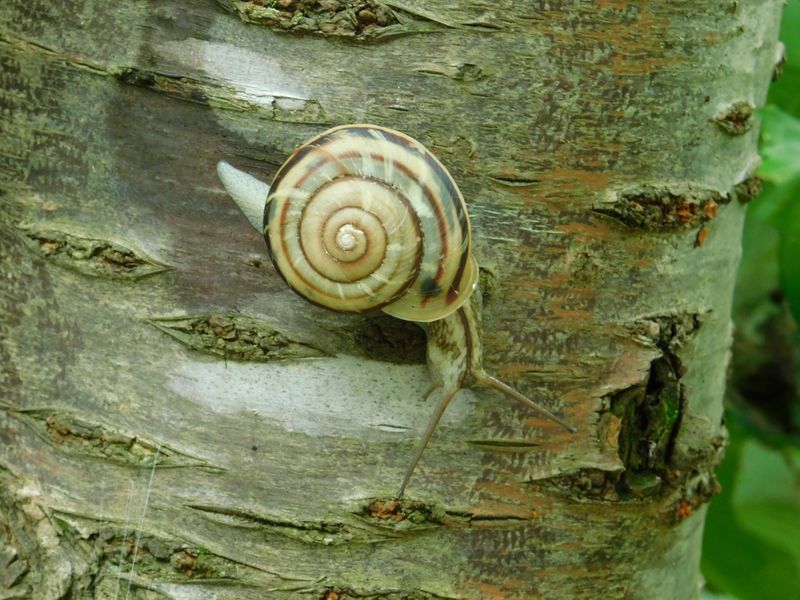 -- ミスジマイマイ。普通に見られるカタツムリ。