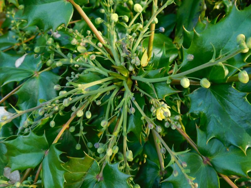 -- ヒイラギナンテンの咲き始め。15:10
