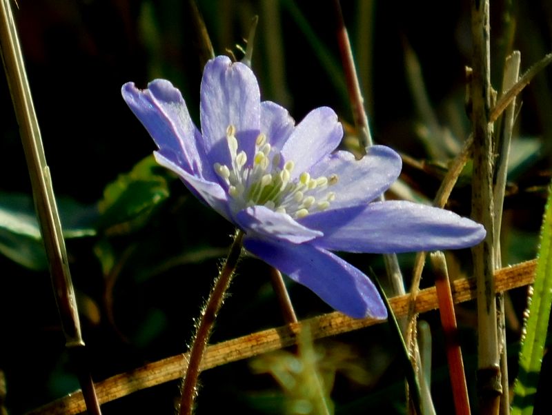 -- キクザキイチゲ1輪。苦しいアングルでズームイン。