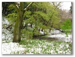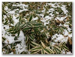 2020年3月29日(日) ◆春分の日の7日後、関東の沖合を南岸低気圧が通過し、わが町にも今年の初雪を降らせた。この冬は、みぞれやあられが僅かに降ることはあったが、総じて暖冬だった。一面真っ白な雪景色になったのは、わが家の周辺では今年初めてである。◆すでに早咲きの桜とハナモモの花は終わった。今はソメイヨシノやヤマザクラが咲いて、その見頃の花が冠雪したのだ。めったに見れない景色なので、登山靴を履き、カメラを持って外に出た。◆不要不急の外出を自粛する要請が出ているが、こんな天候で外に出ている人は、ほとんどいなかった。人どうしの接近がないことは、願ってもない環境だ。◆まず、新治市民の森に行った。そのレポはこちら。昼過ぎ、雪が止んだ。午後2時少し前、四季の森公園に到着したときは、雪が解け始めていた。◆30分ほど経ったころ、気温が上がったせいだろうか、カメラのレンズが内側から曇ってしまった。レンズの外側は拭けるが、内側は無理。カメラを懐に入れて、内部まで温める。30分ほどぶらぶらと散歩するうち、ようやくレンズが晴れた。◆四季の森公園で冠雪の桜を撮ることはできなかったが、地表で名残り雪を冠った植物の姿をカメラに収めることができた。