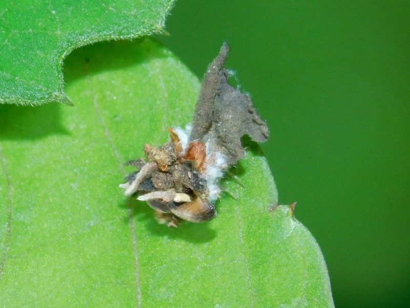 -- ゴミを背負って歩く虫。クサカゲロウの幼虫?