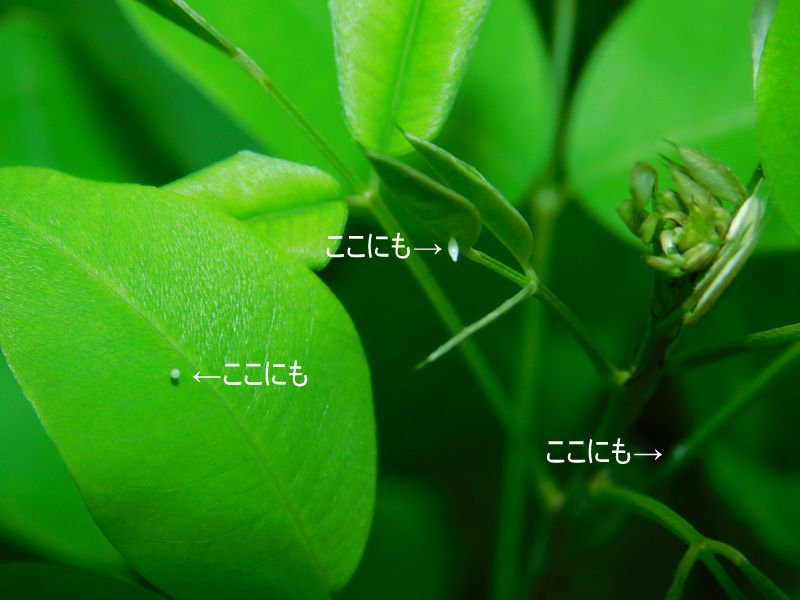 -- キタキチョウの卵がいくつも。
